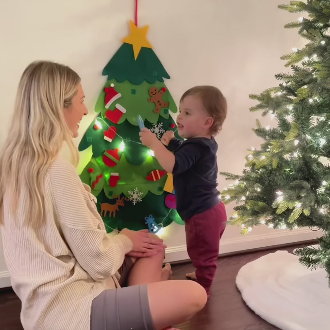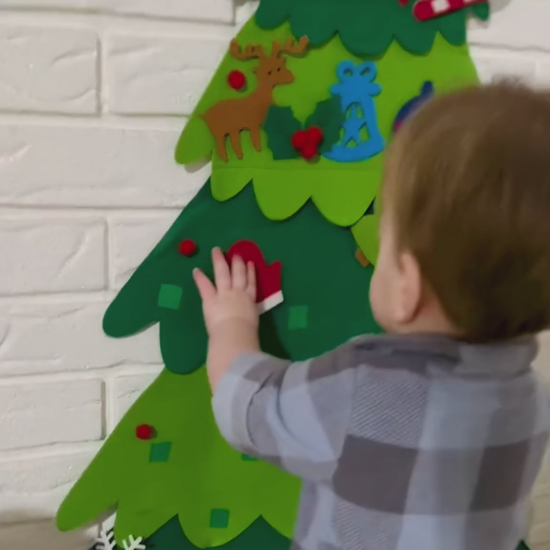Not a single-season toy. Thick felt withstands years of use, families report 3+ Christmases and counting. Velcro stays strong, colours stay vibrant. Simply fold and store after holidays. As your child grows (18 months → 5 years), they'll use it differently: simple decorating → complex patterns → creative storytelling.